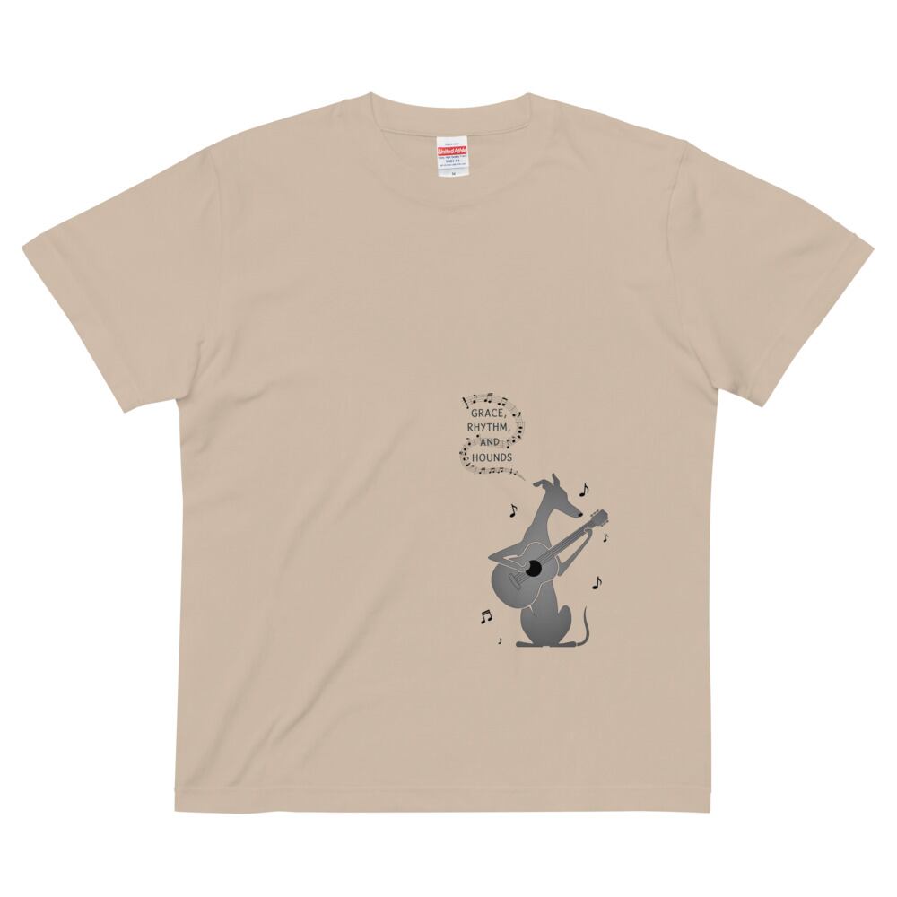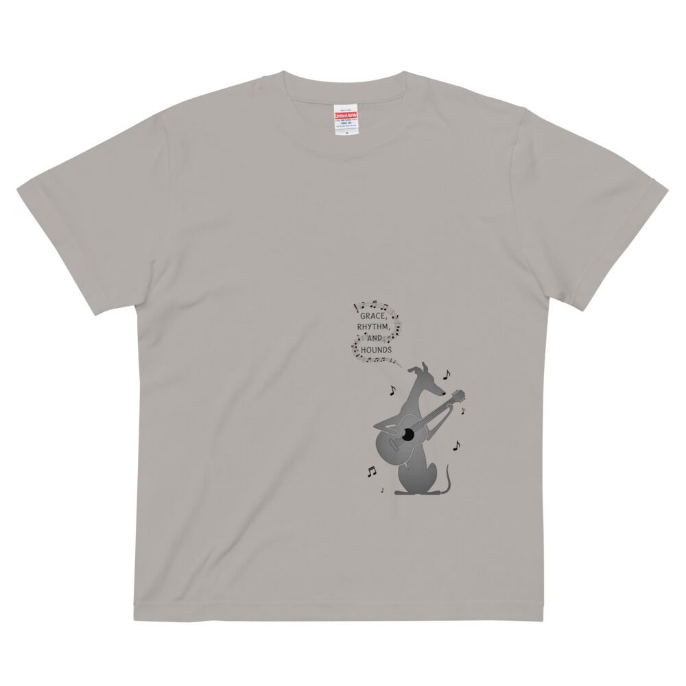 洗練されたグレイハウンドのシルエットと、ジャズのリズムを感じさせるギターの組み合わせが魅力の一枚。音符が軽やかに舞うデザインは、音楽好きにもアート好きにもピッタリです。