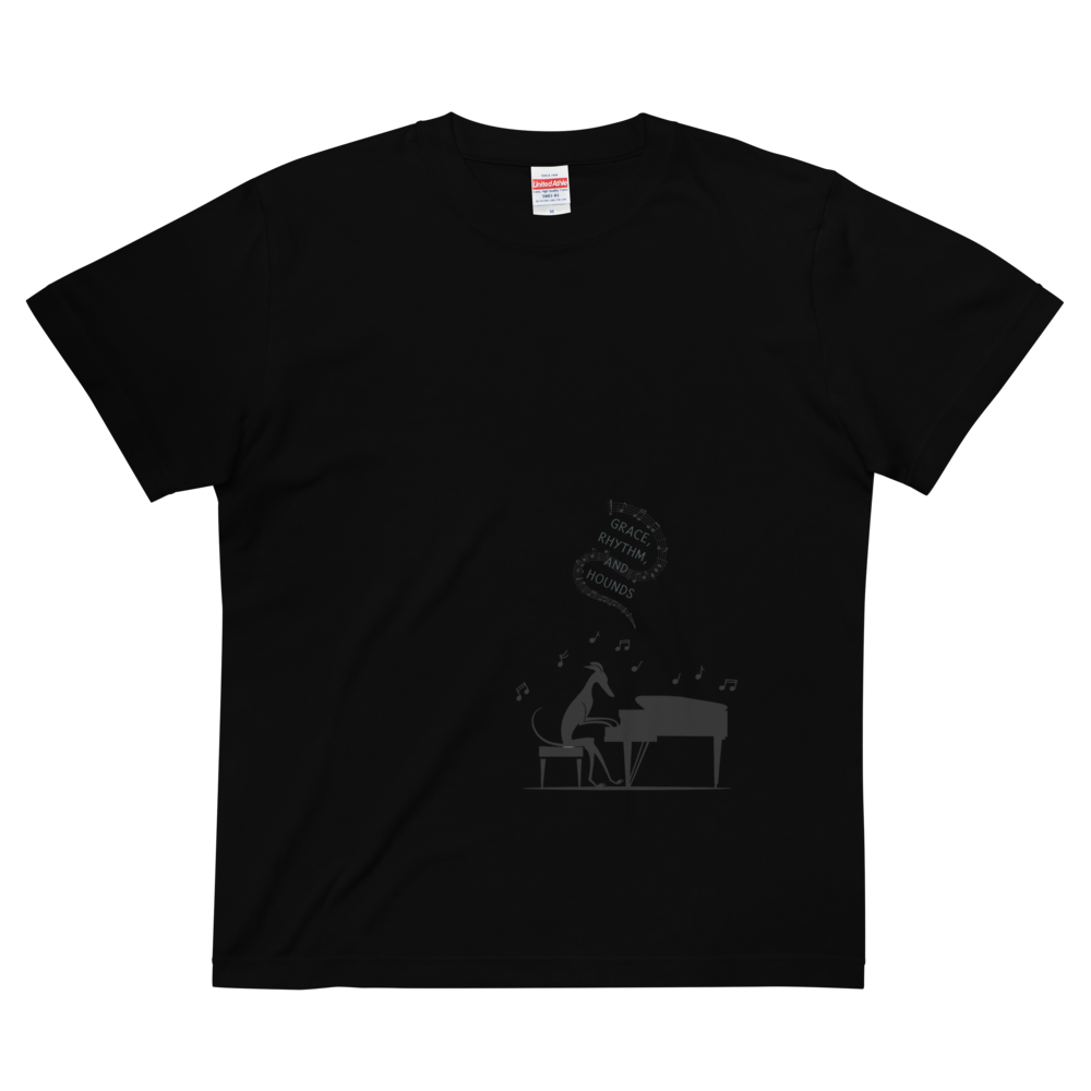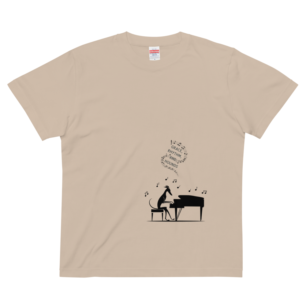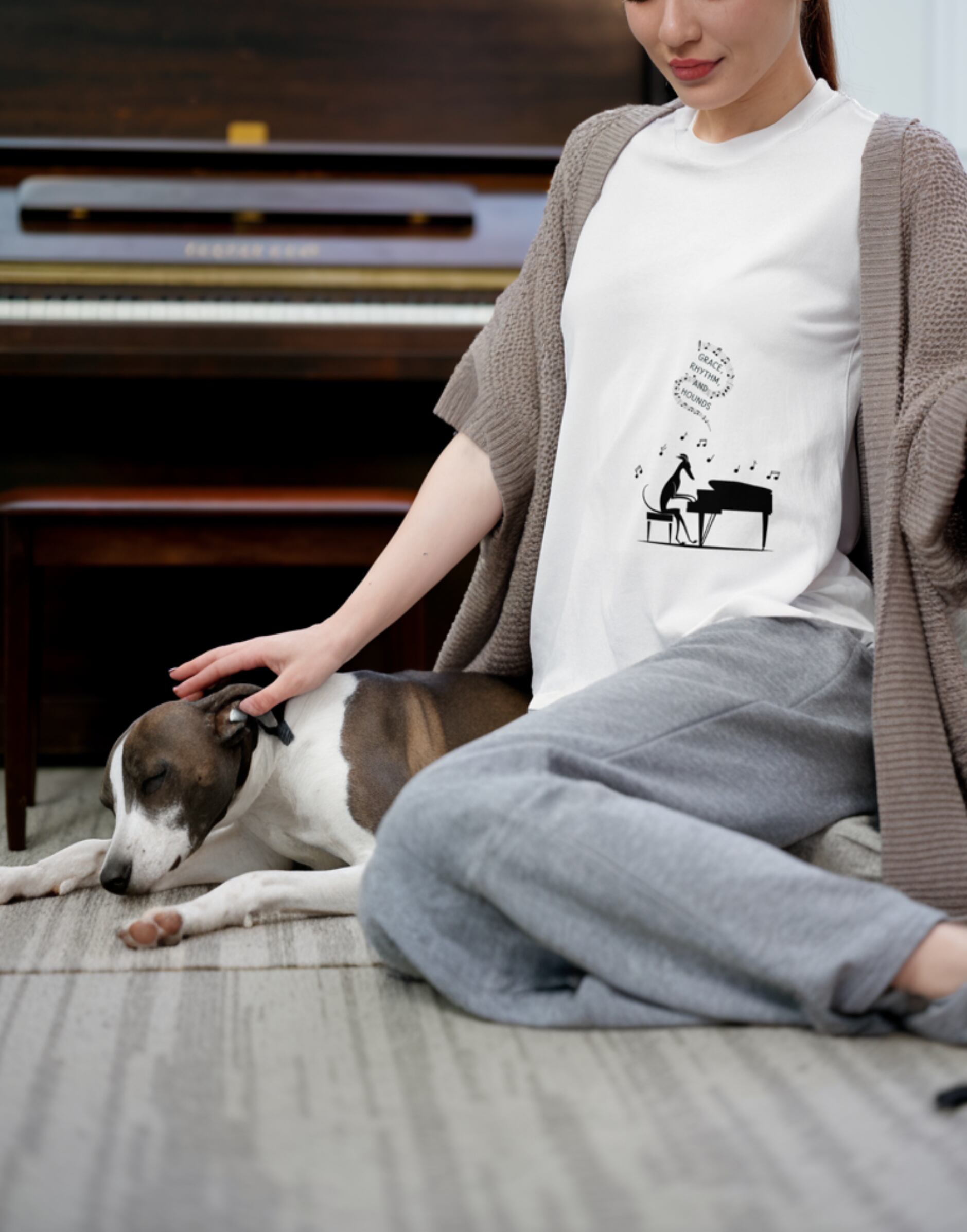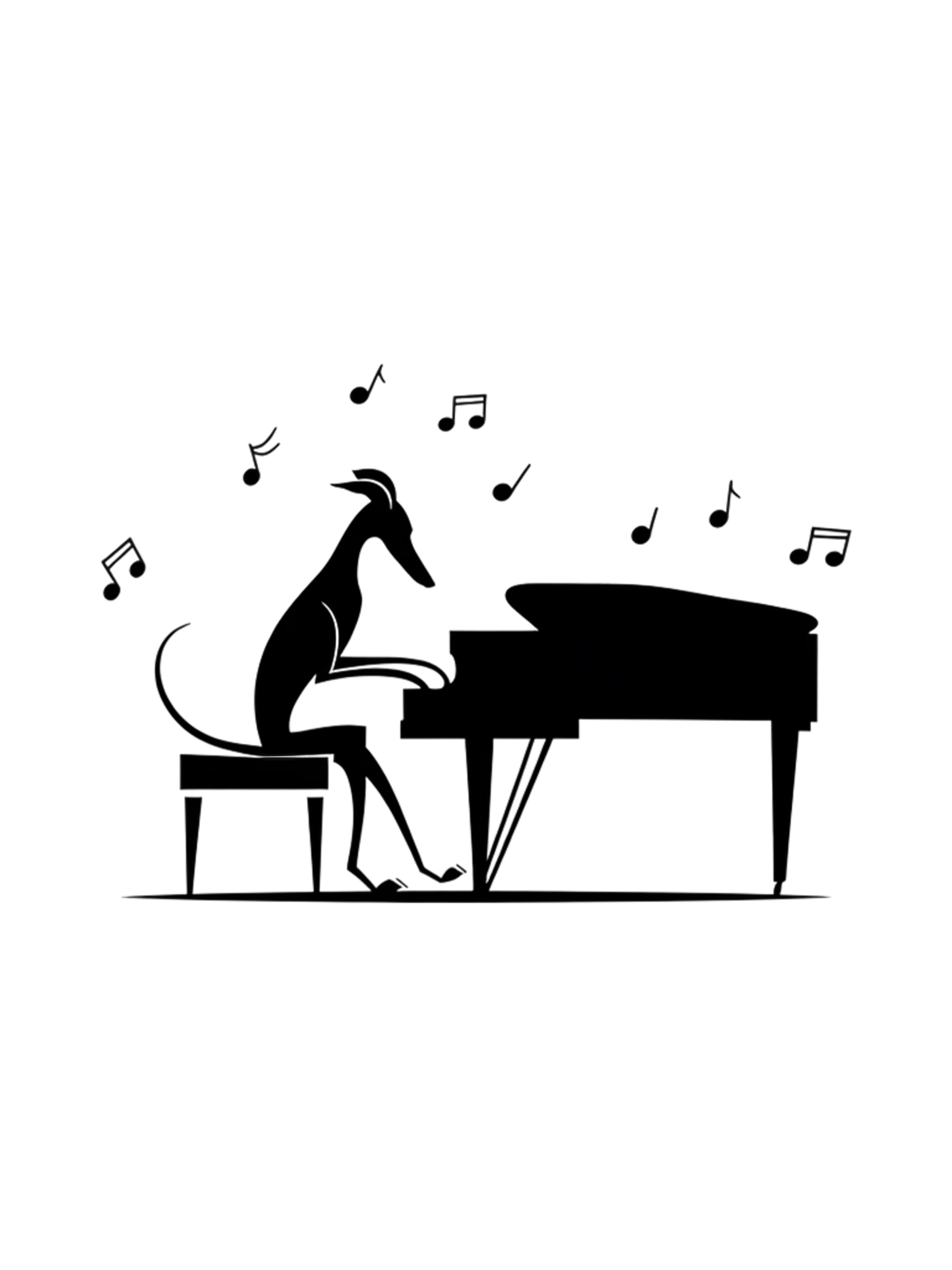 洗練されたグレイハウンドのシルエットと、ジャズのリズムを感じさせるピアノの組み合わせが魅力の一枚。音符が軽やかに舞うデザインは、音楽好きにもイタグレ好きにもピッタリです。