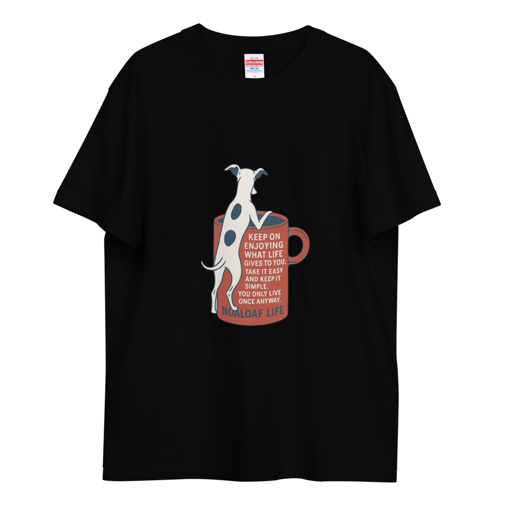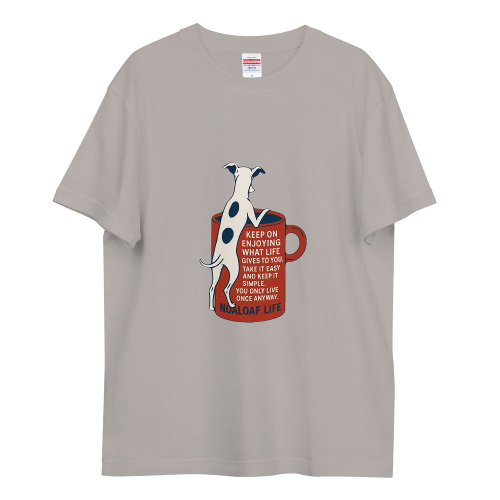 マグカップをのぞき込むイタグレがキュートな、ゆるさと前向きさを感じる一枚。