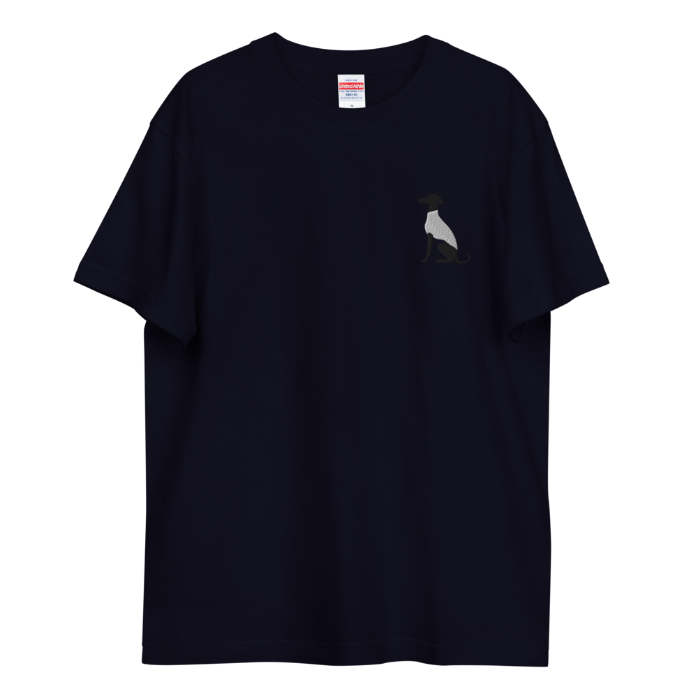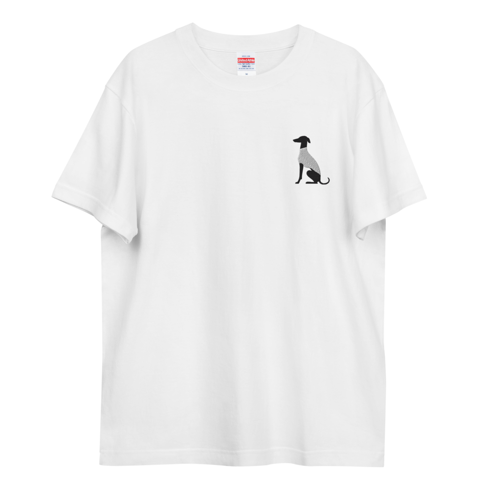 シンプルなTシャツに、イタグレワンポイント刺繍のアクセント。