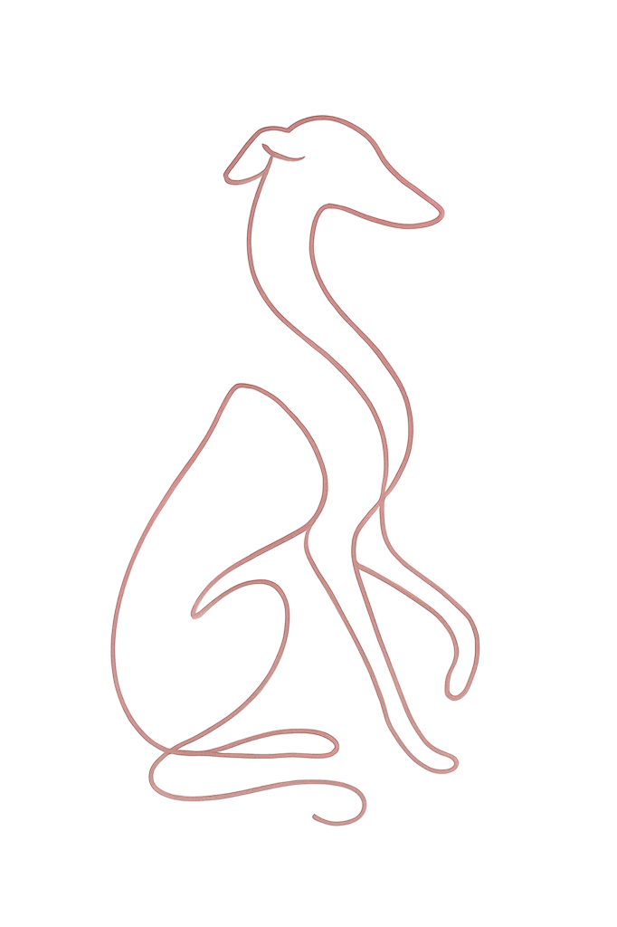繊細なラインで描かれたイタリアン・グレイハウンドのシルエットが、洗練された大人のカジュアルスタイルを演出します。