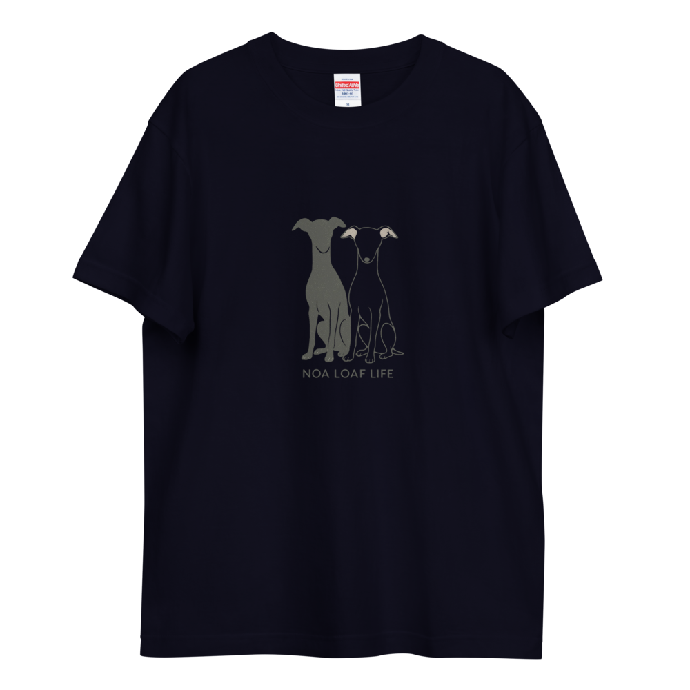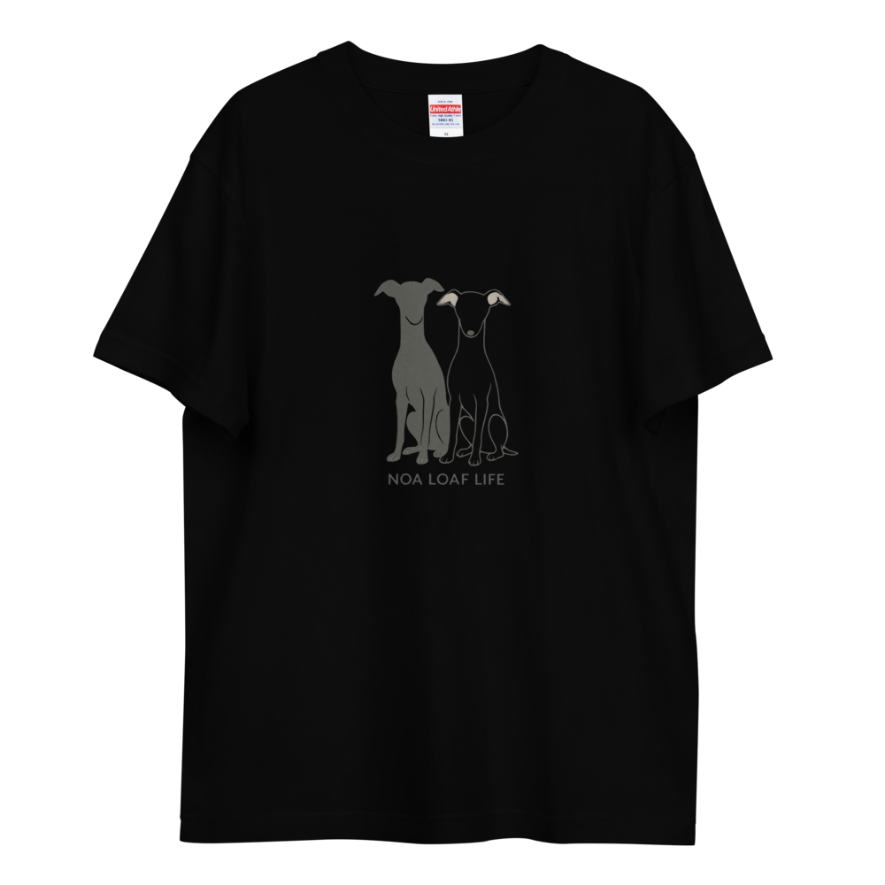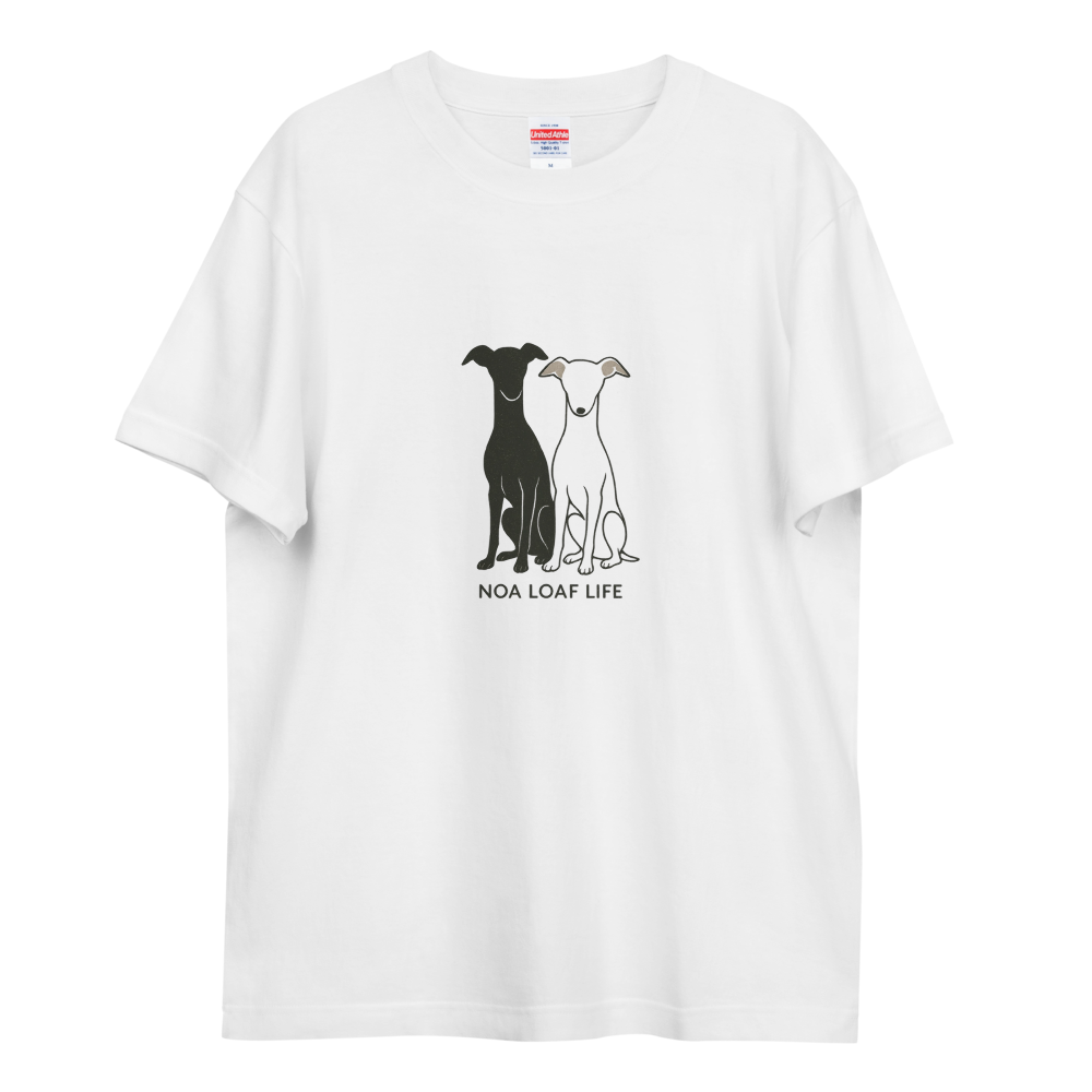 異なるタッチで表現された2匹が、さりげなく寄り添う、温もりあるロゴデザインTシャツです。