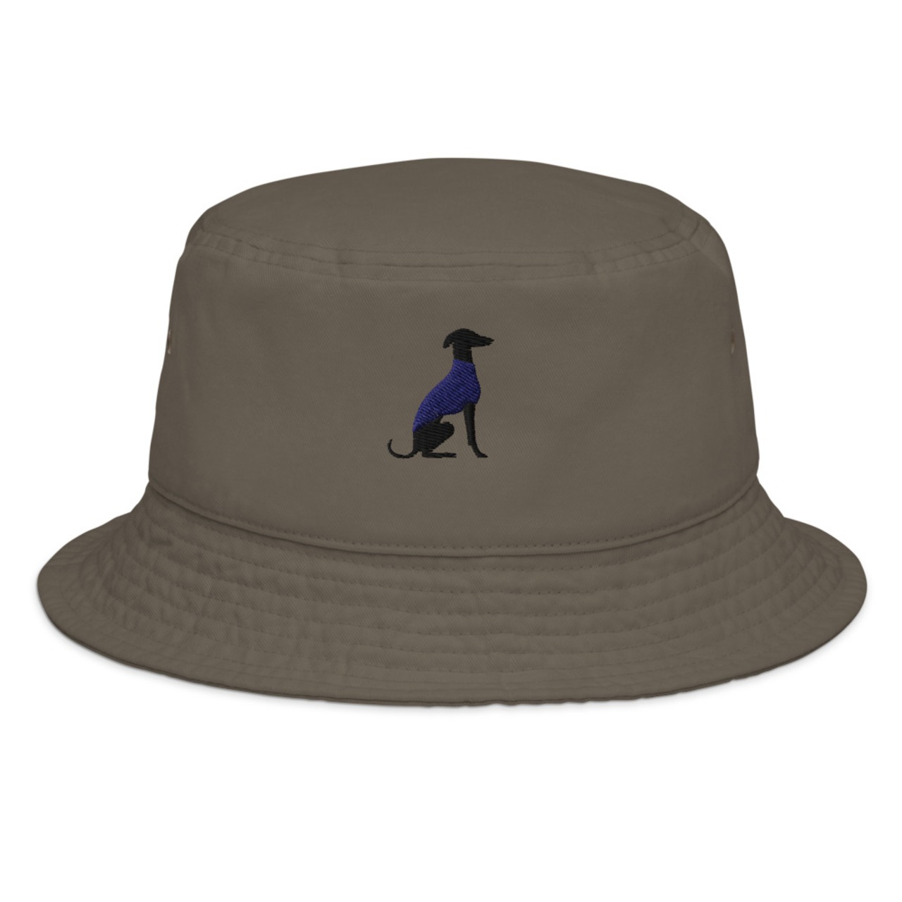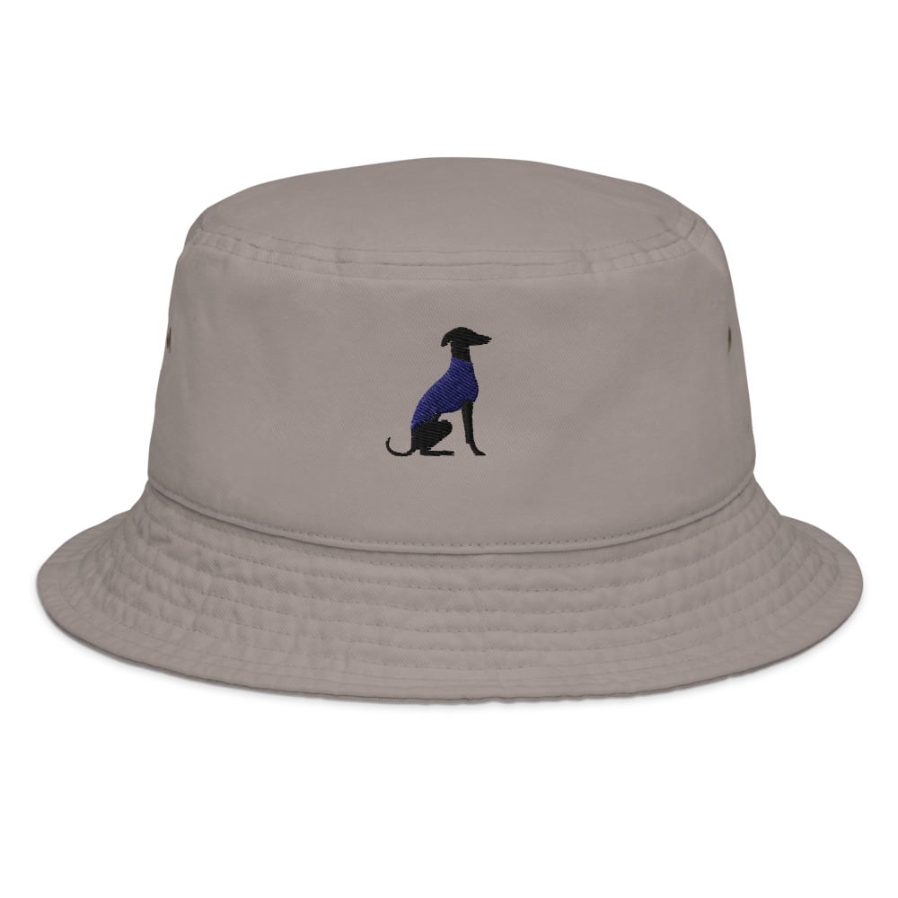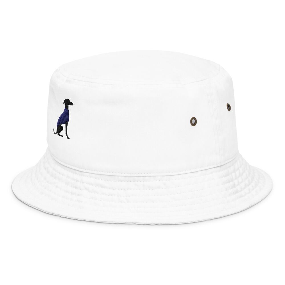 シンプルなバケットハットに、イタリアングレーハウンドの刺繍をワンポイントで。