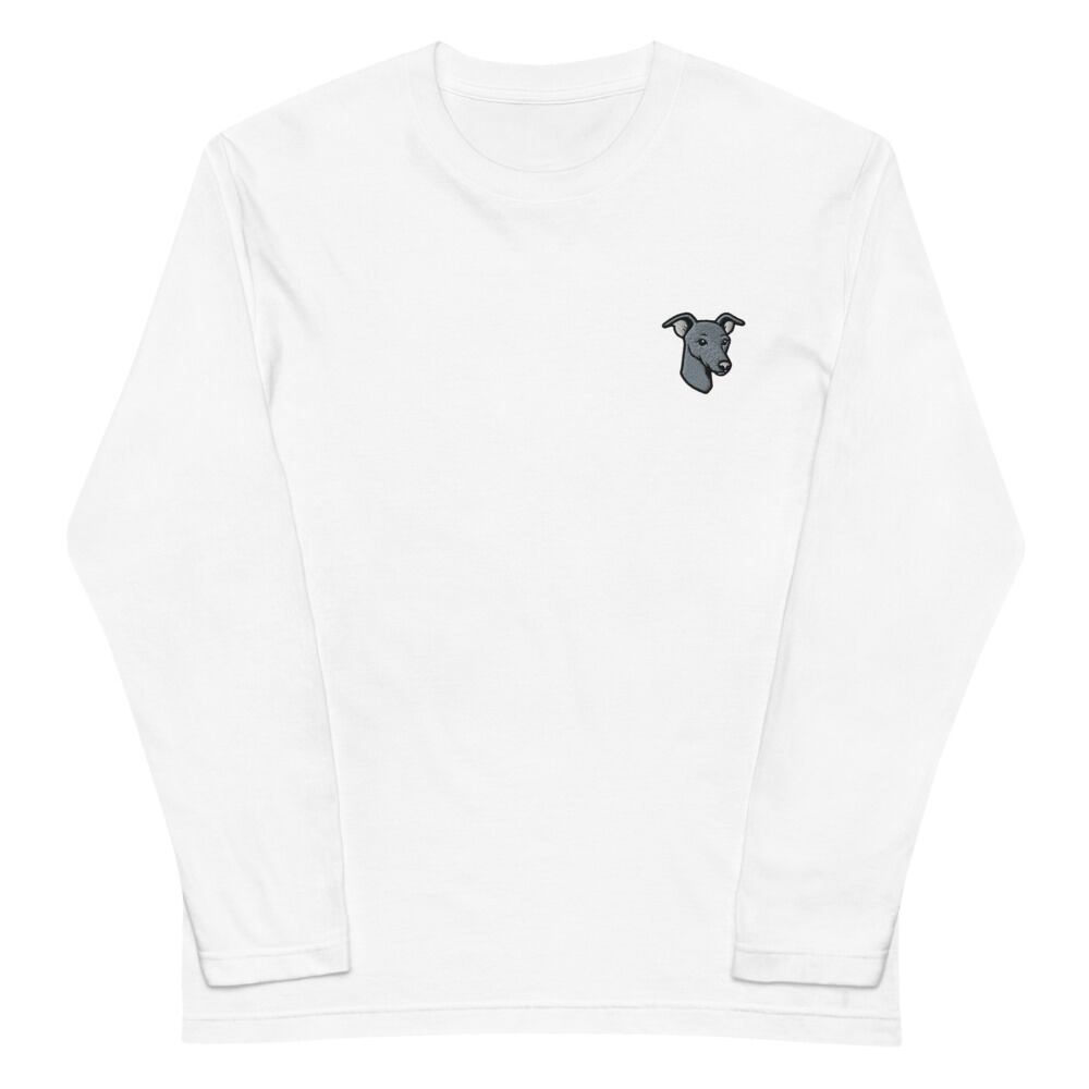 イタグレの愛らしい表情を、胸元にワンポイント刺繍であしらった長袖Tシャツです。