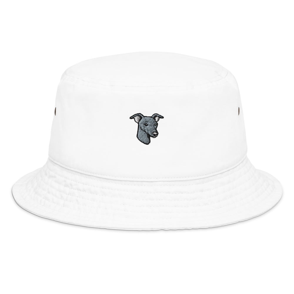 ユニセックスで楽しめるシンプルデザインのバケットハットに、イタグレの愛らしい表情を刺繍でプラス。