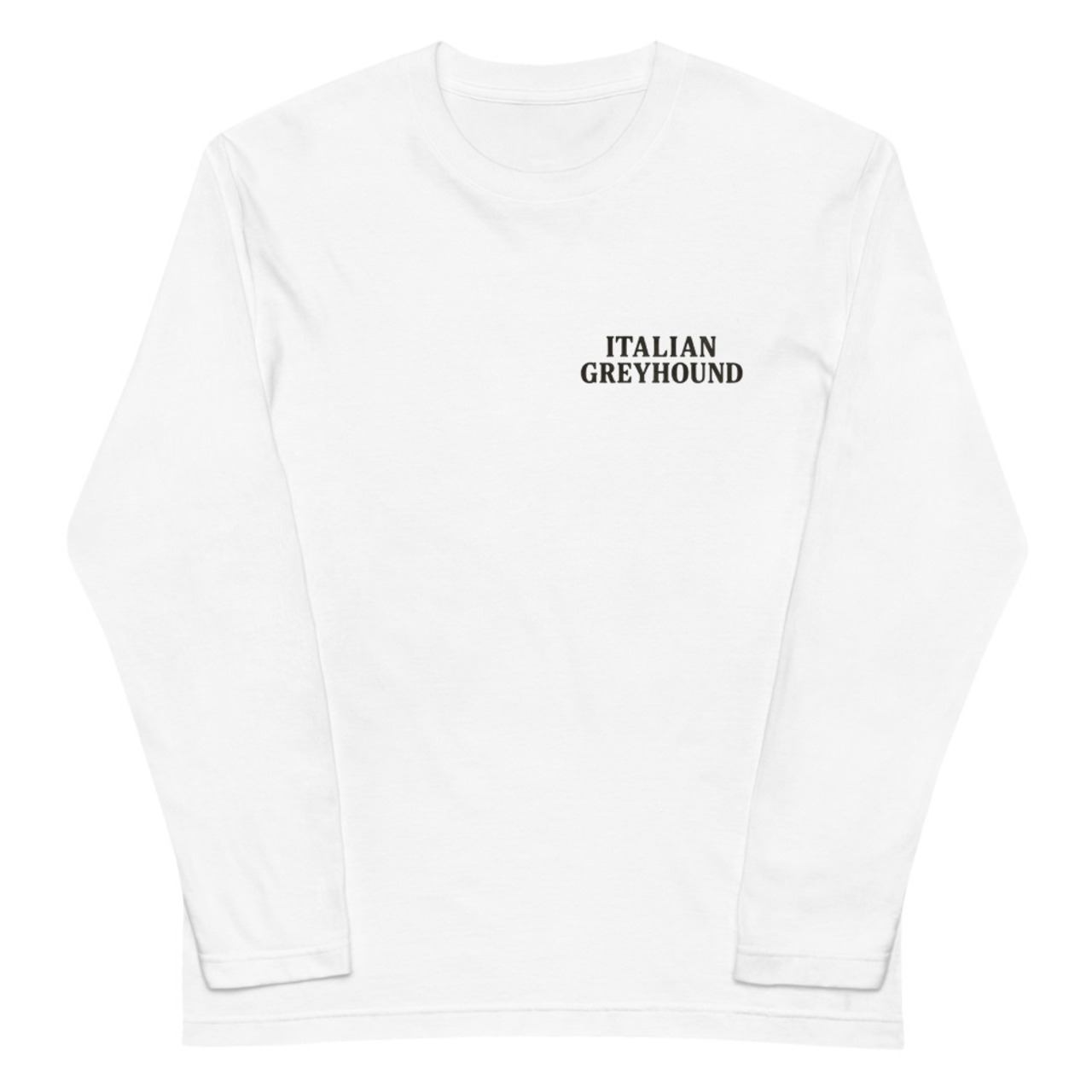 背面いっぱいに大胆なプリントを施し、前面にはシンプルな胸ワンポイントロゴでバランスを取った長袖Tシャツです。