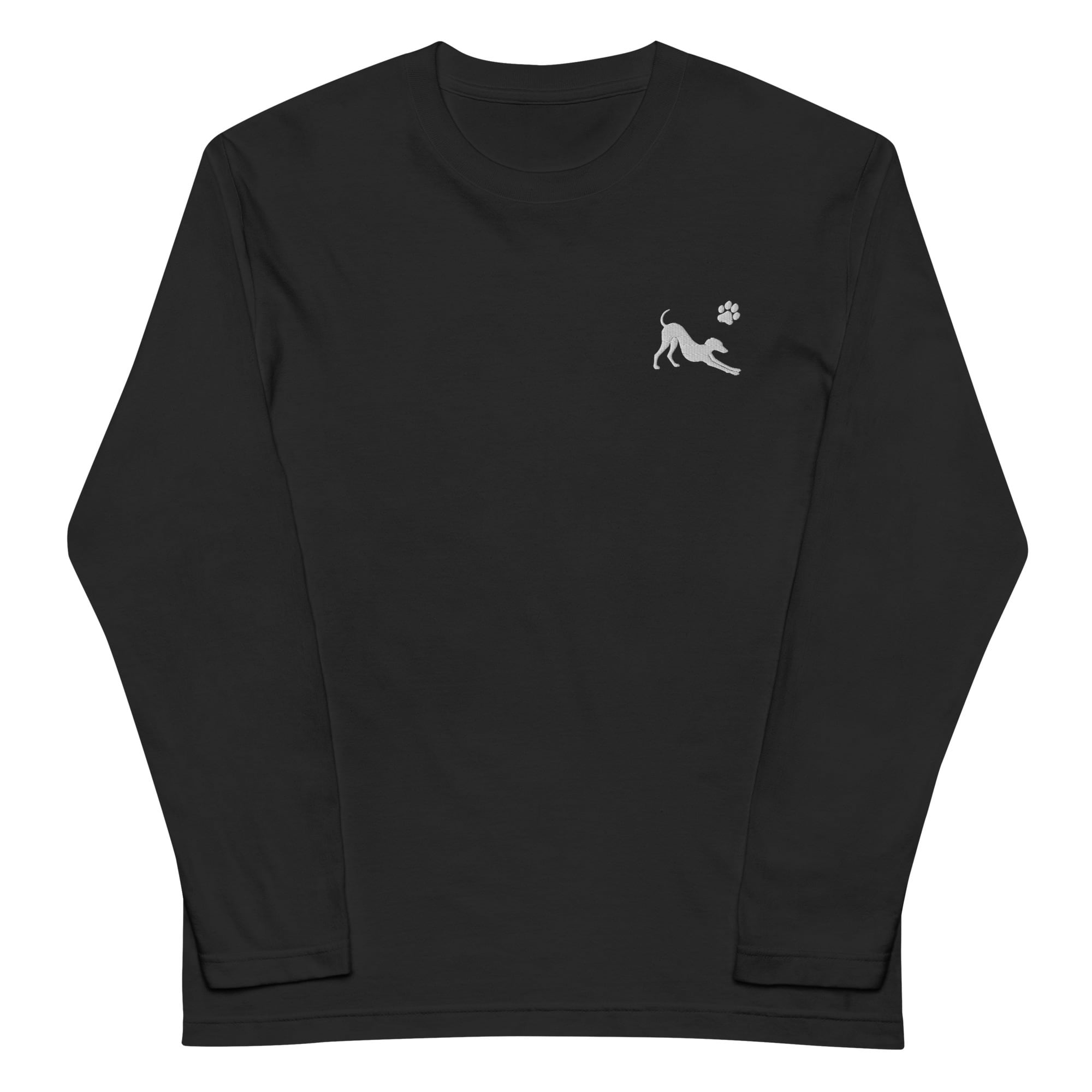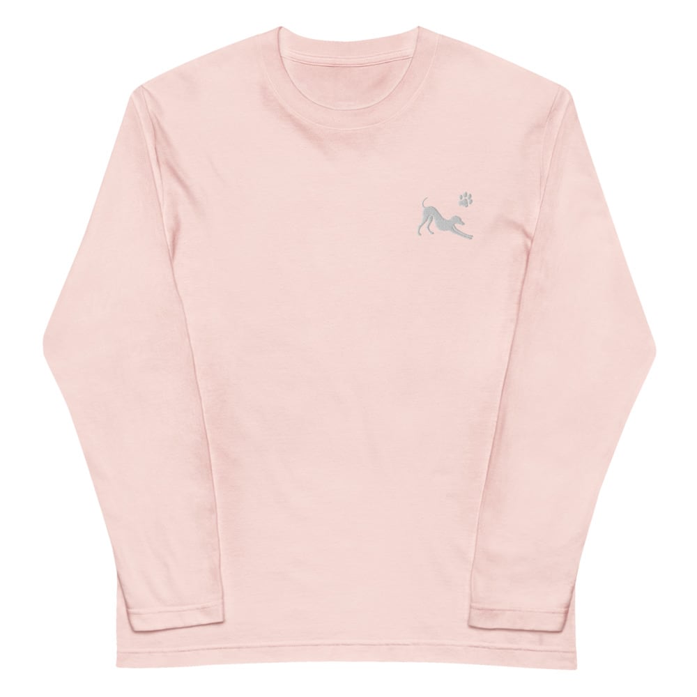 イタグレならではの、あの優雅なストレッチ姿と、かわいらしい足跡モチーフをワンポイントで胸元に刺繍。