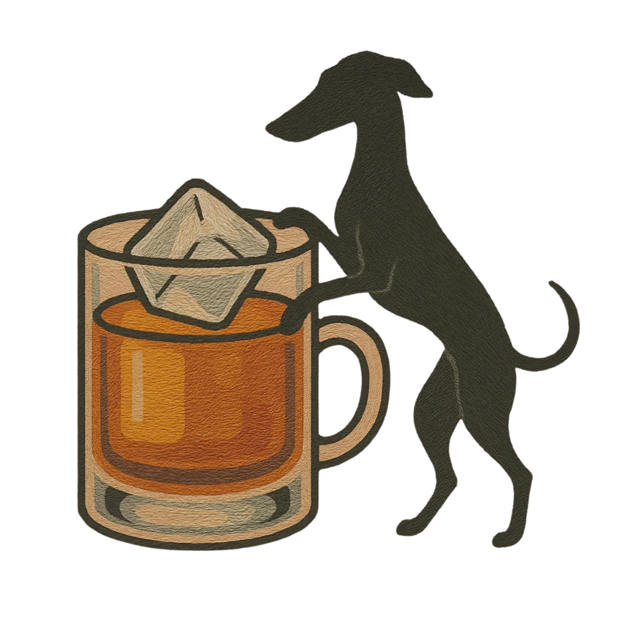 氷の入ったグラスを覗き込むイタグレのシルエットを、刺繍風タッチでデザインしました。