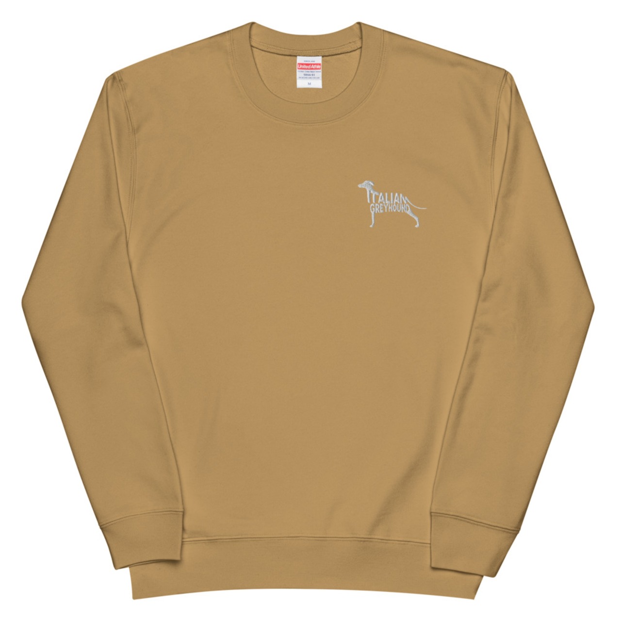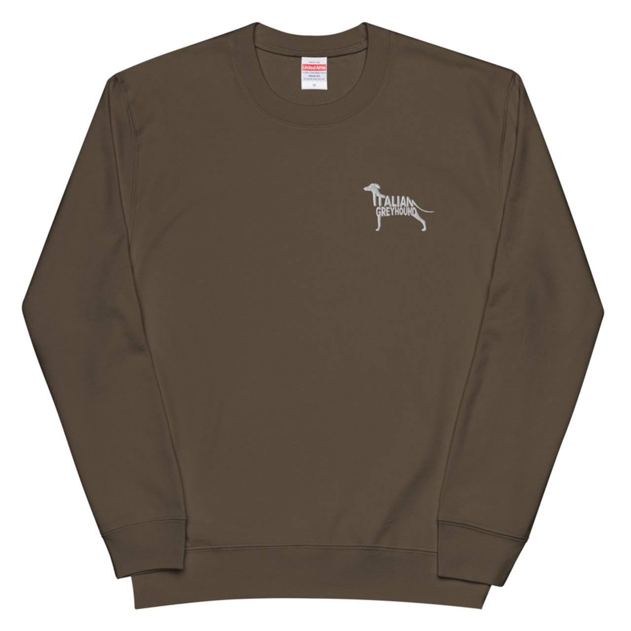 愛らしいボディラインに「ITALIAN GREYHOUND」の文字を重ねた刺繍風プリントが、シンプルなアイテムに上品なアクセントを加えます。(デザインは刺繍風のプリントです。)