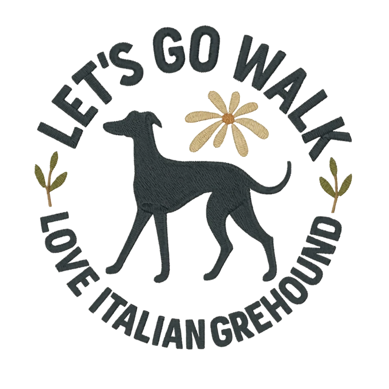イタグレオーナーなら誰もが心ときめく“お散歩”シーンを、刺繍風プリントで表現。