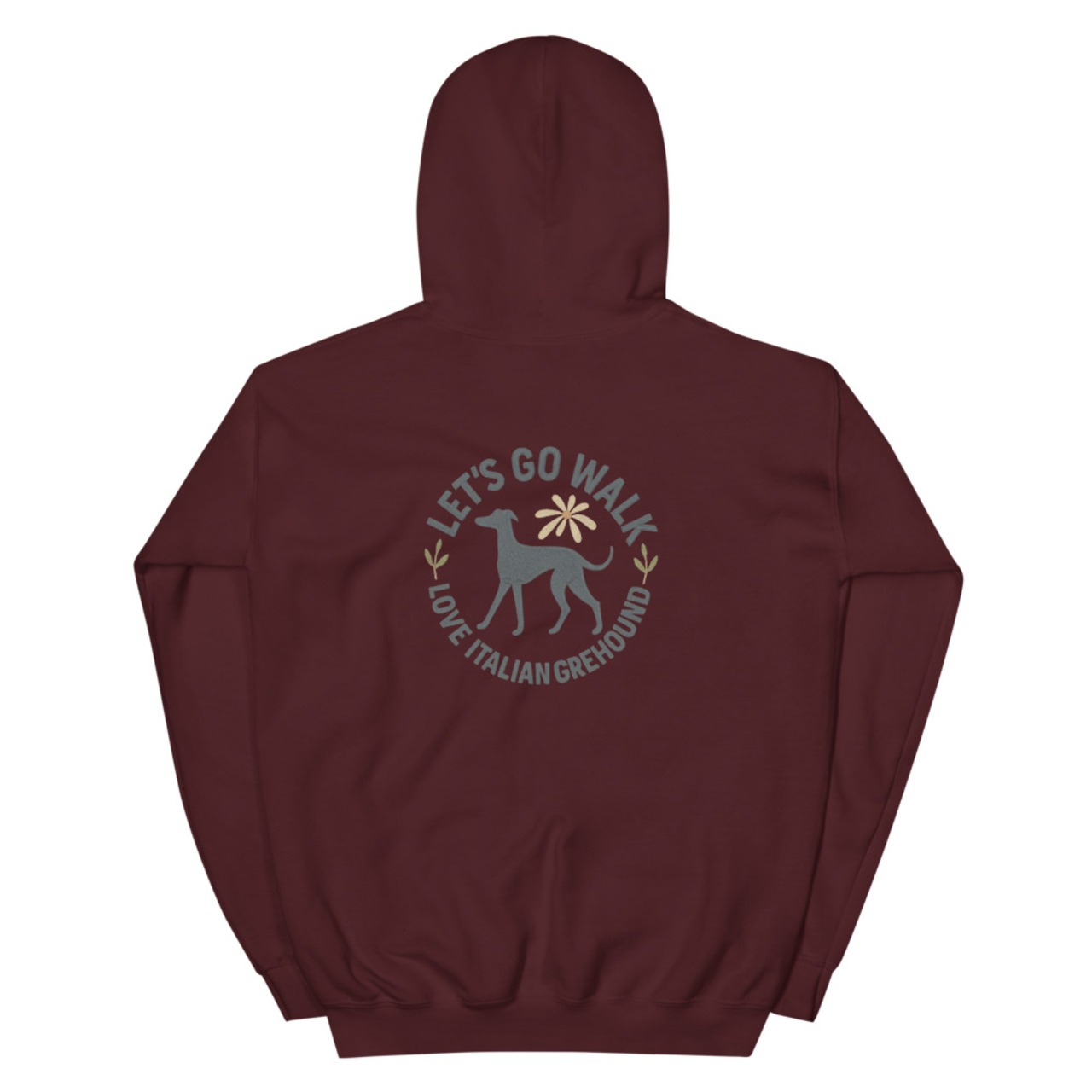 背面には「LET’S GO WALK」の文字と共に、イタグレと草やお花を組み合わせた温かみのあるデザインを大胆にプリントしました。