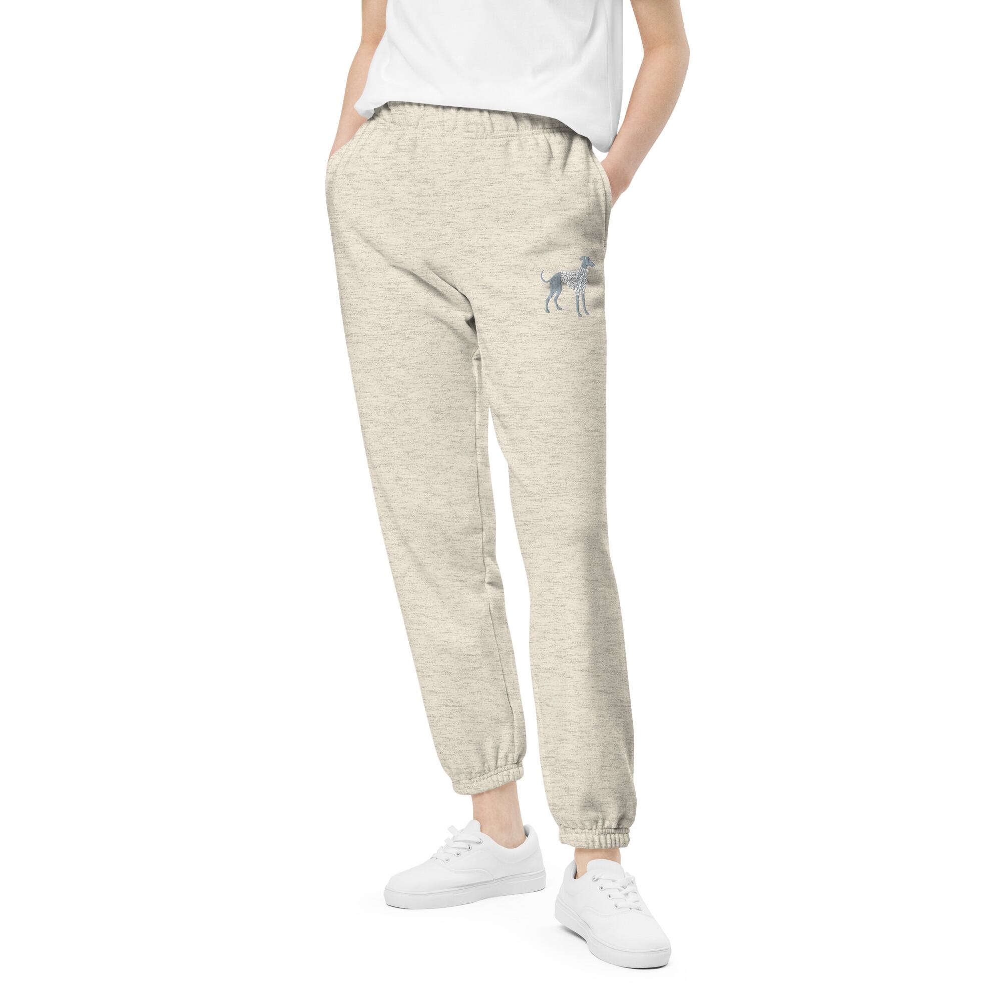 さりげなくも存在感のある、人気のイタグレシルエット刺繍をワンポイントにあしらったスウェットパンツ。