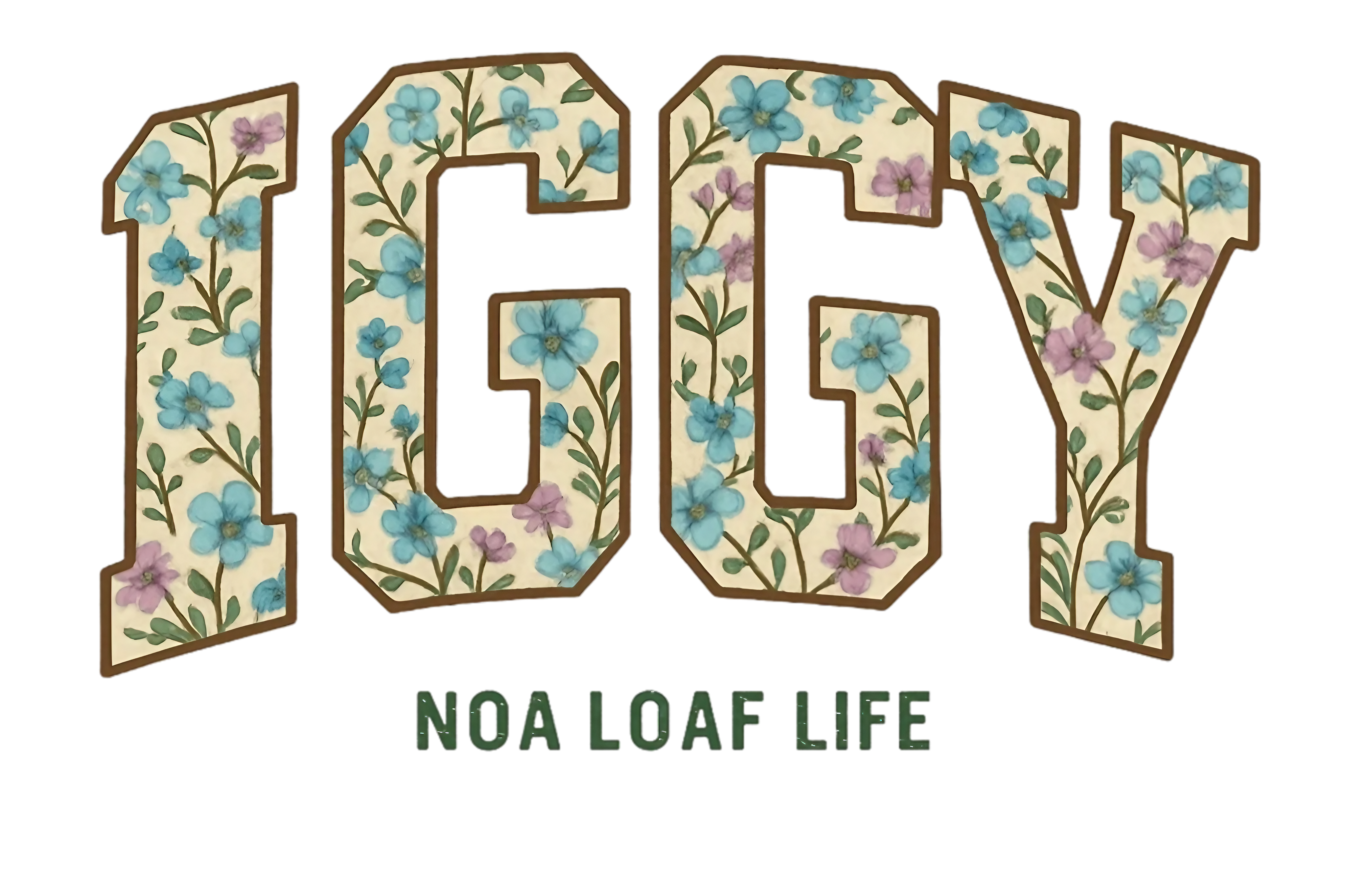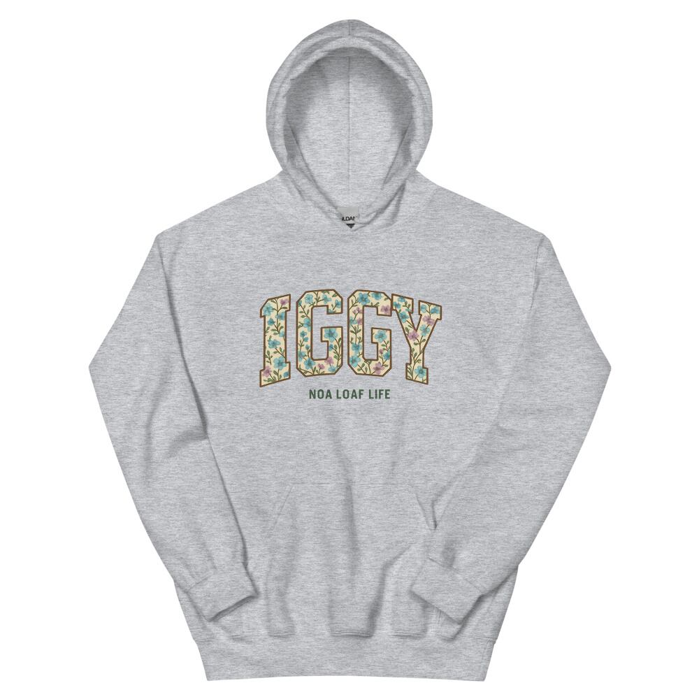 IGGYロゴの中に咲き誇るのは、淡いブルーとパープルのフラワーモチーフ。