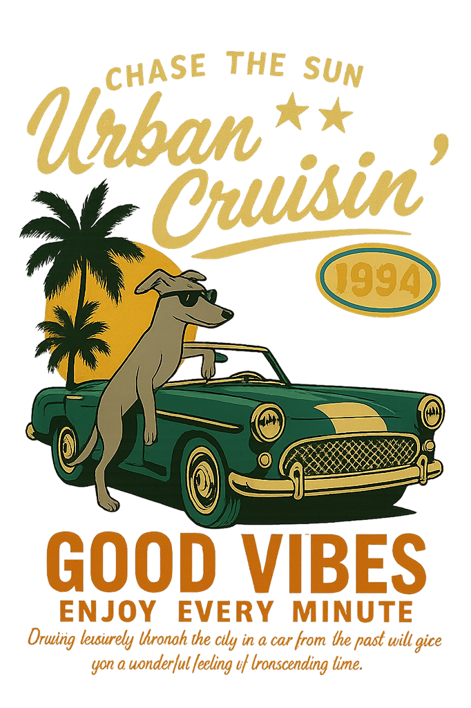 クラシックカーにもたれて、どこか得意げなイタグレのワンポイント。