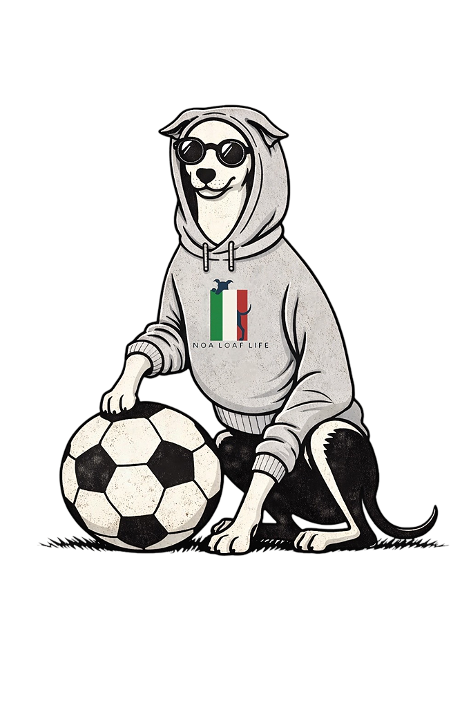 Noa Loaf Lifeのロゴパーカーを着こなしたイタグレが、