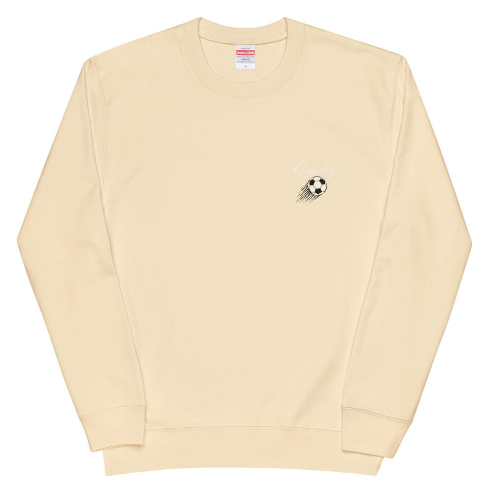 どこか余裕のある表情でサッカーボールとスタンバイ。