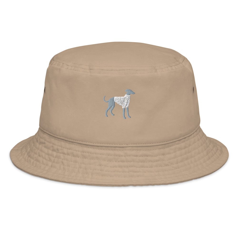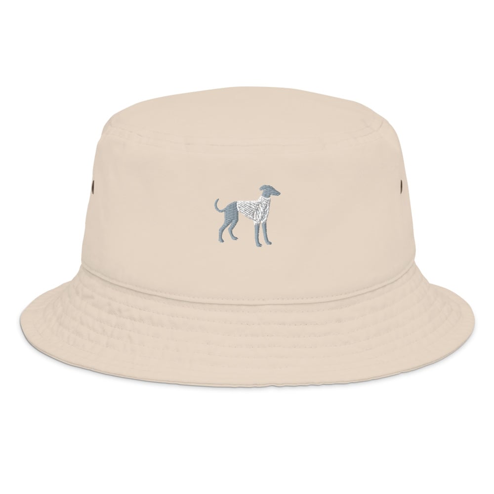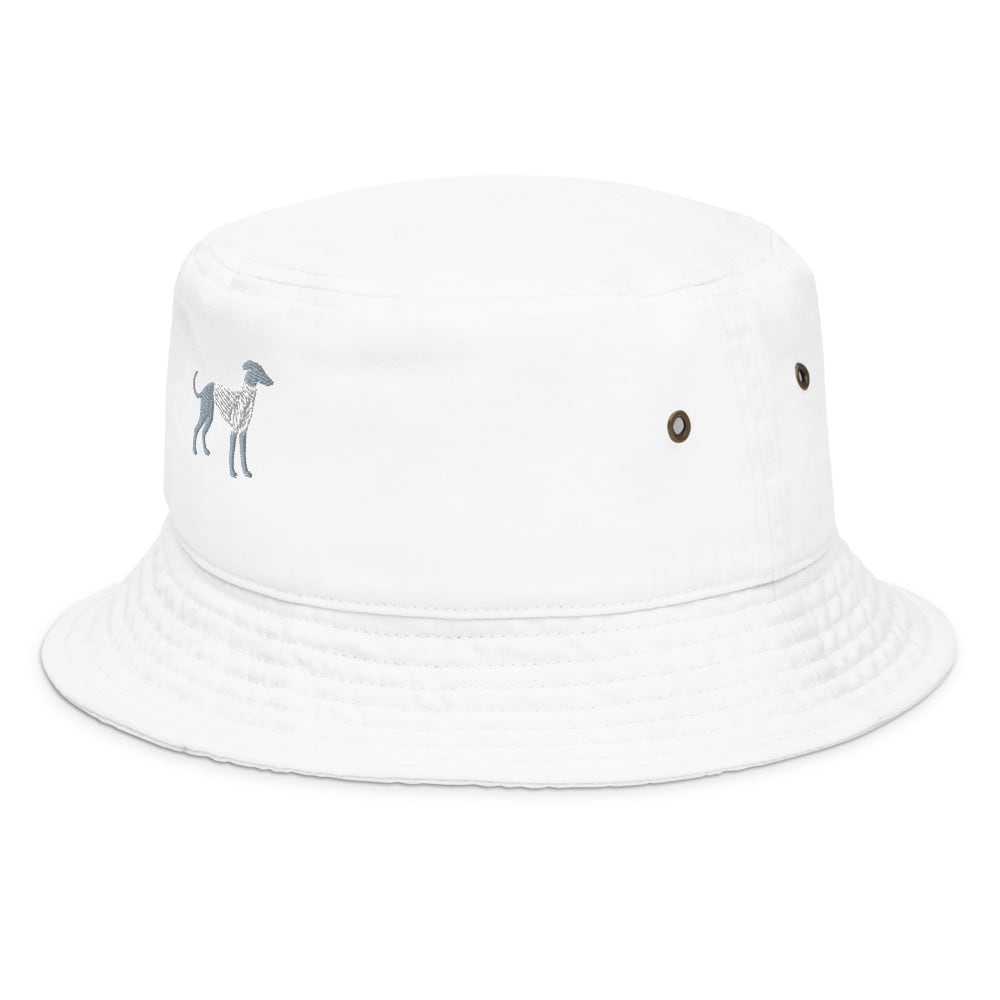 ユニセックスで楽しめるシンプルデザインのバケットハットに、大人気のイタグレシルエットを刺繍でプラス。