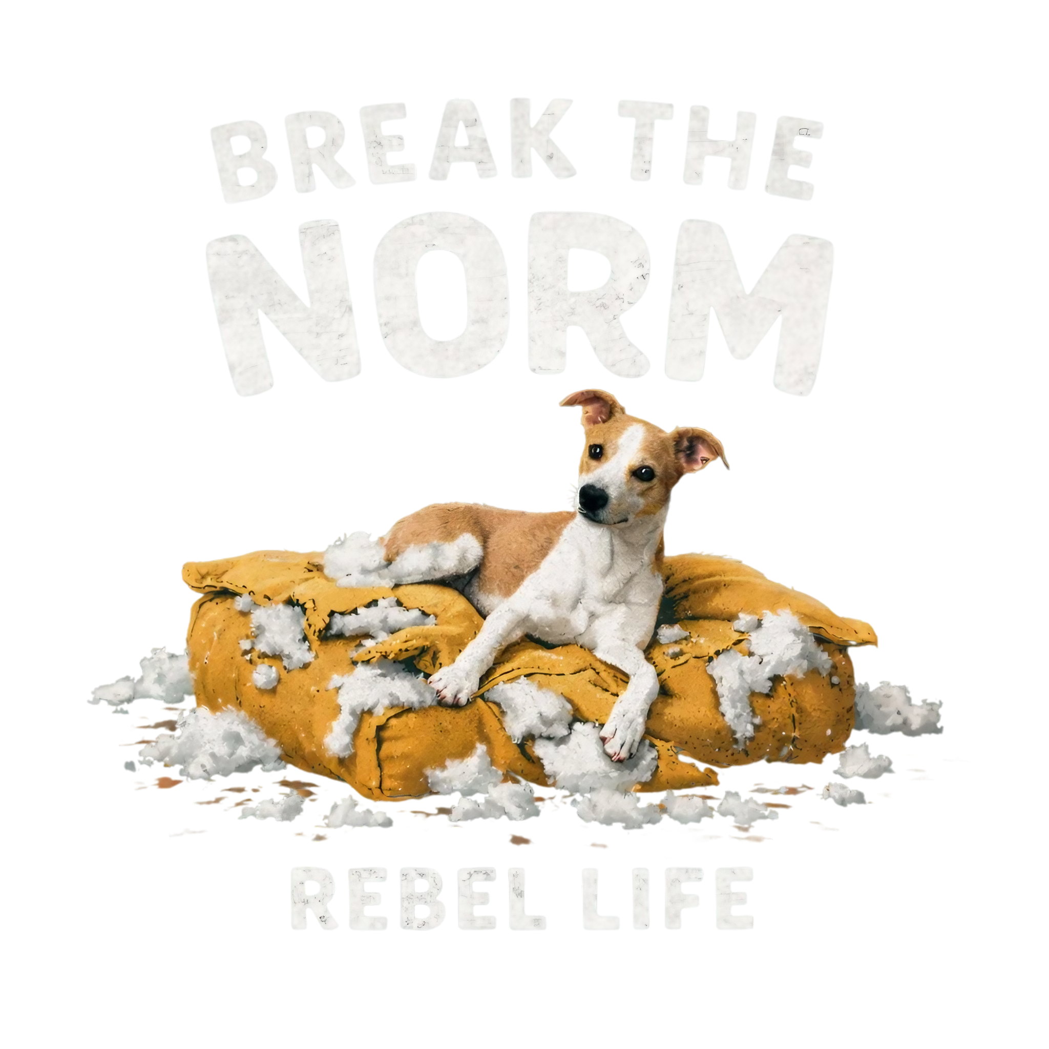 綿まみれのクッションの上で、