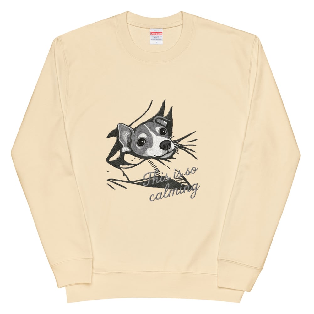 刺繍風の立体感ある表情と、のぞき込むような仕草がたまらない一枚。