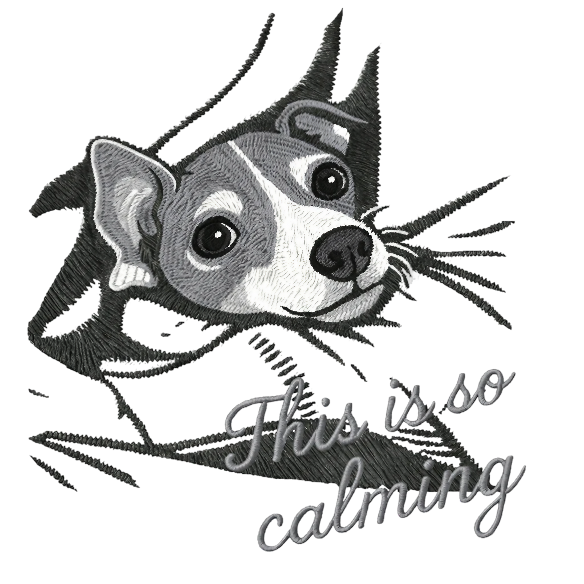 刺繍風の立体感ある表情と、のぞき込むような仕草がたまらない一枚。
