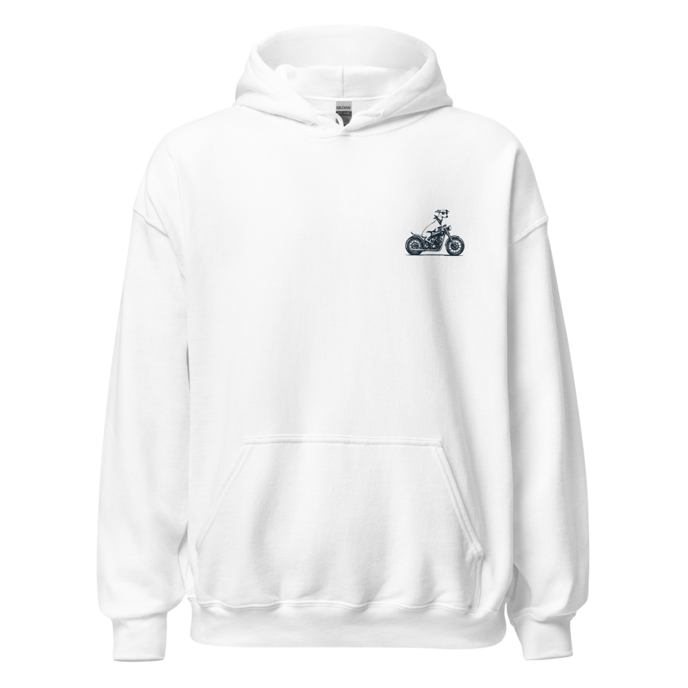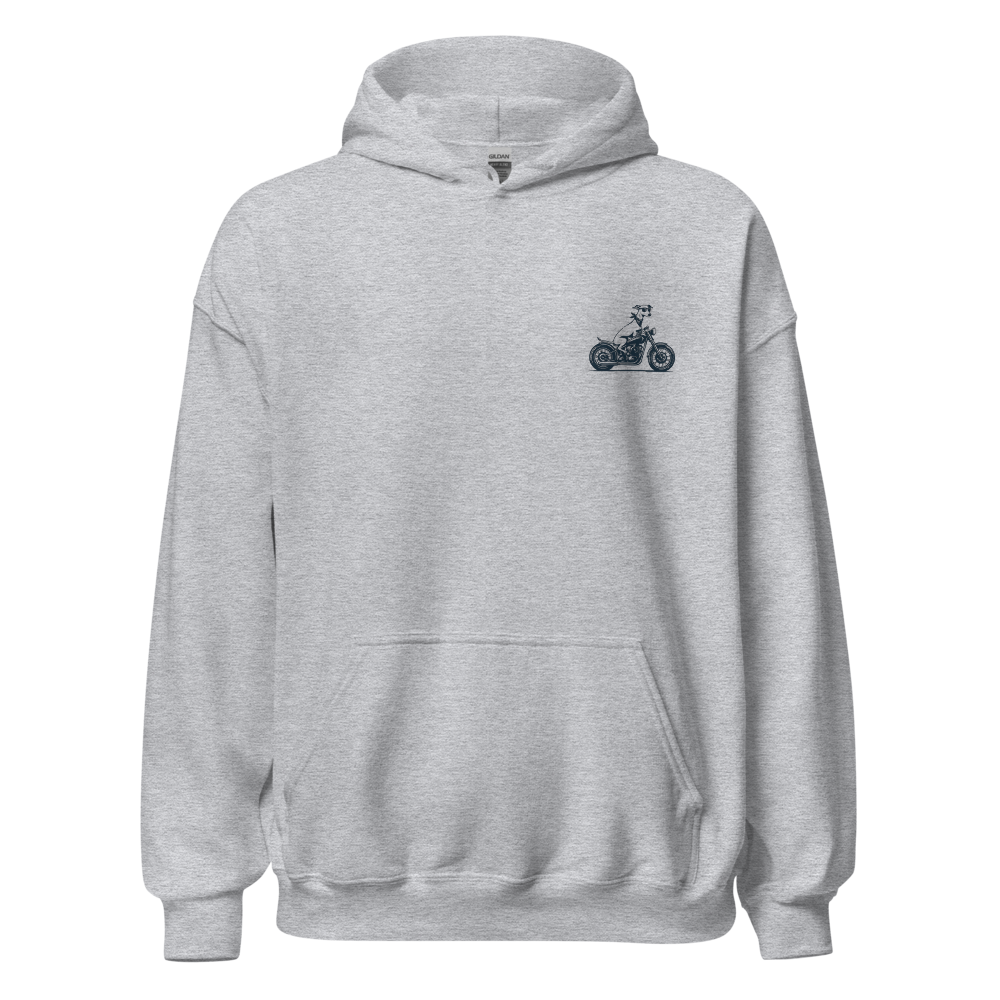 サングラス姿のイタグレが颯爽とバイクにまたがるシルエット。