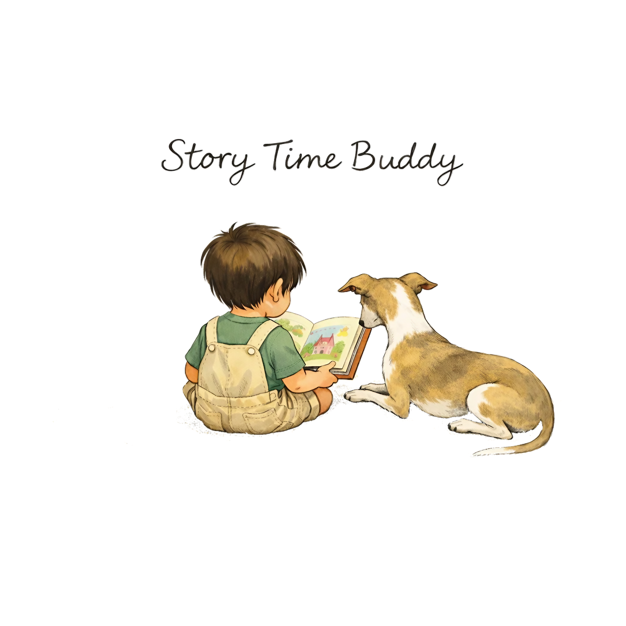 絵本を読む子どもの横に、当たり前のように座るイタグレ。