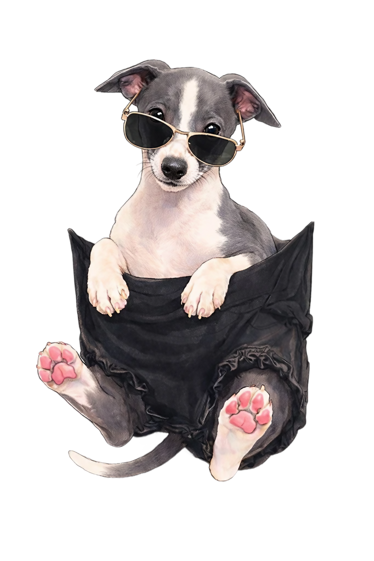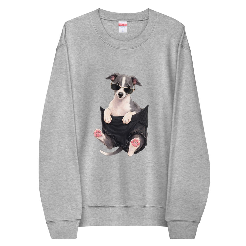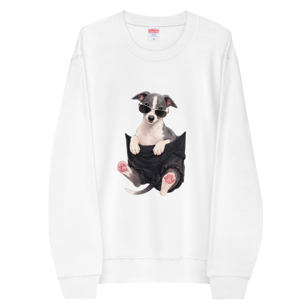 ポケットからひょっこり顔を出すイタグレ。