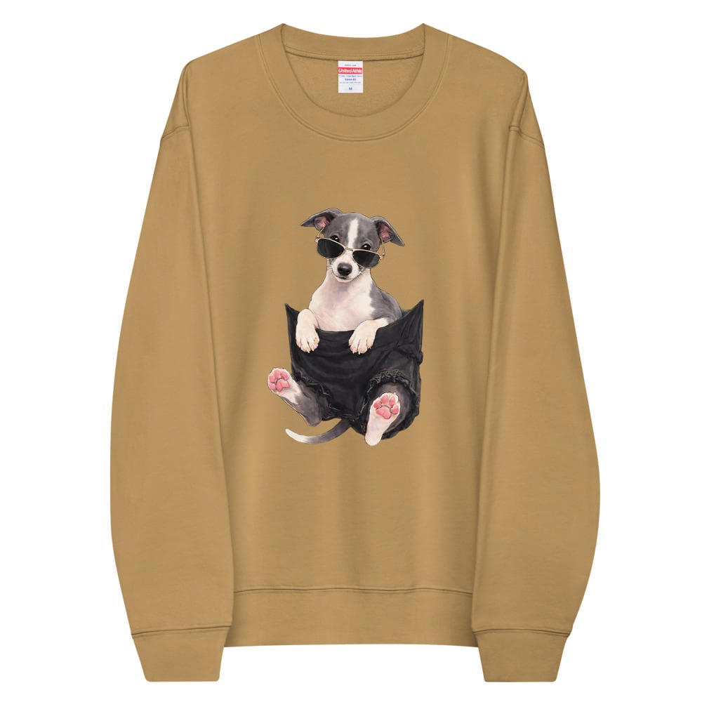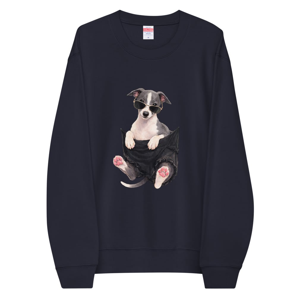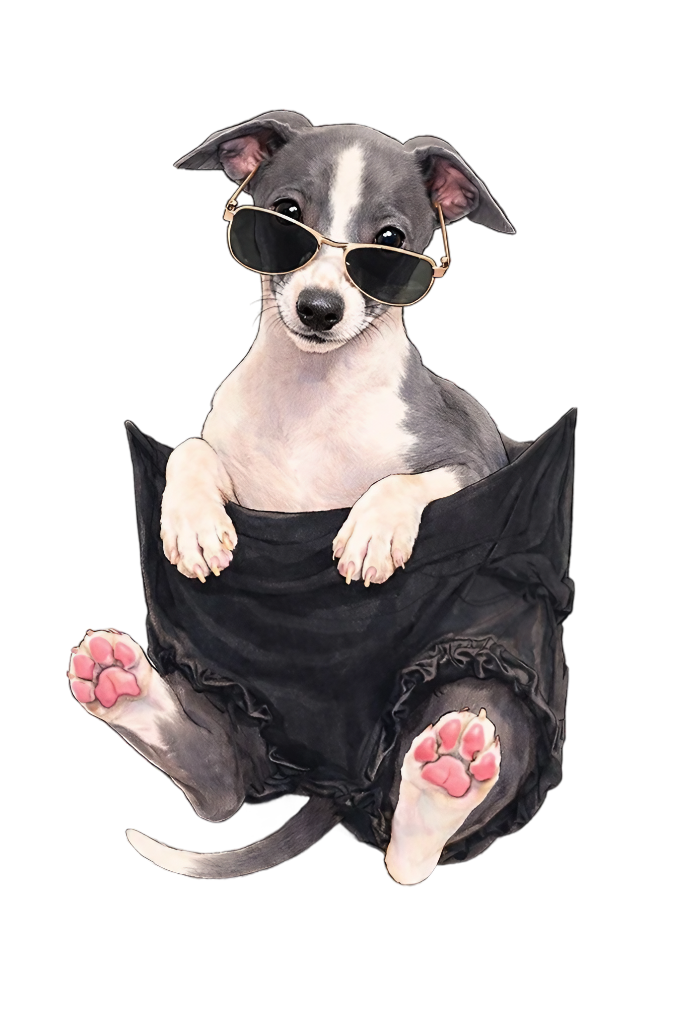 ポケットからひょっこり顔を出すイタグレ。