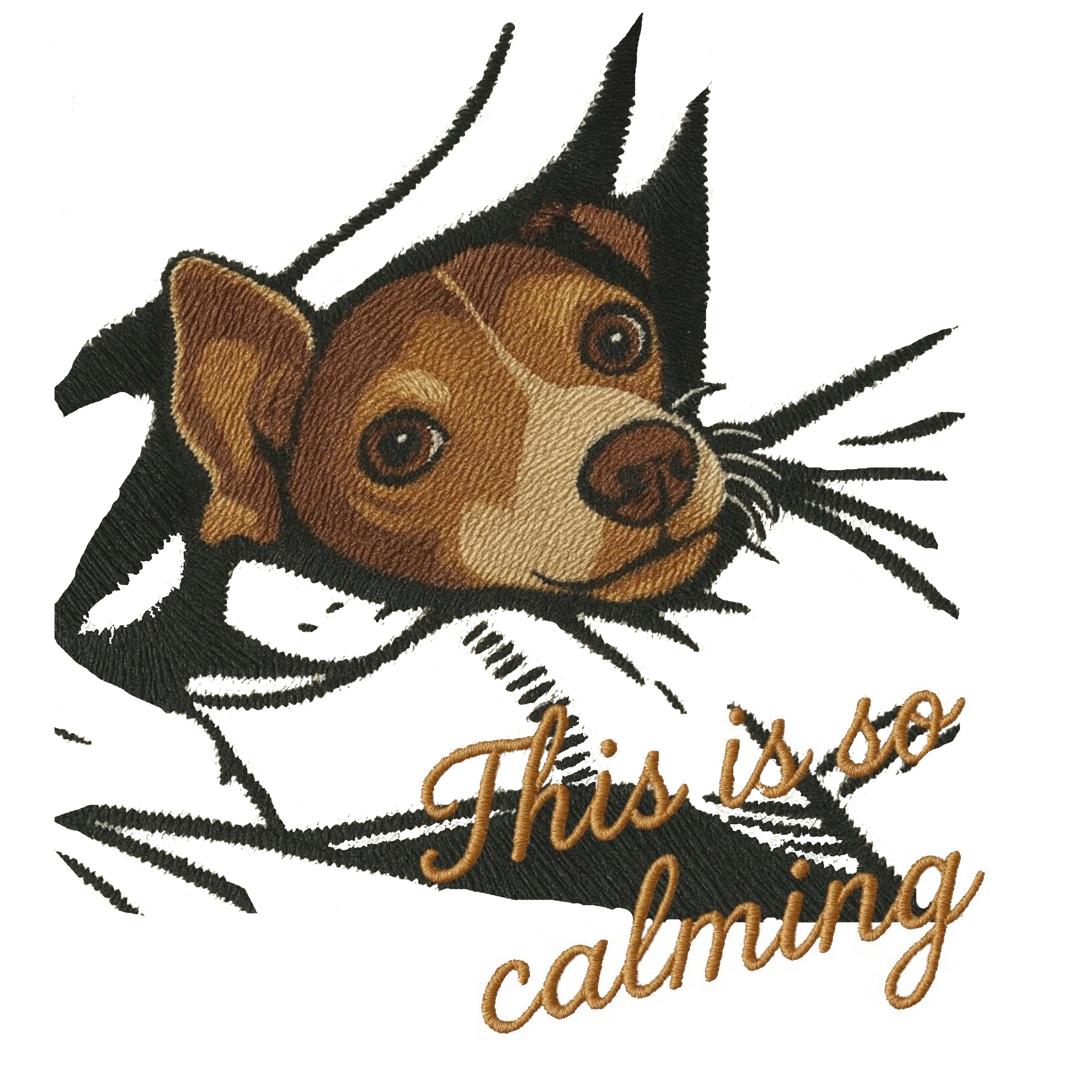 愛犬のぬくもりの中の幸せ時間を刺繍風で丁寧に描いたデザイン。