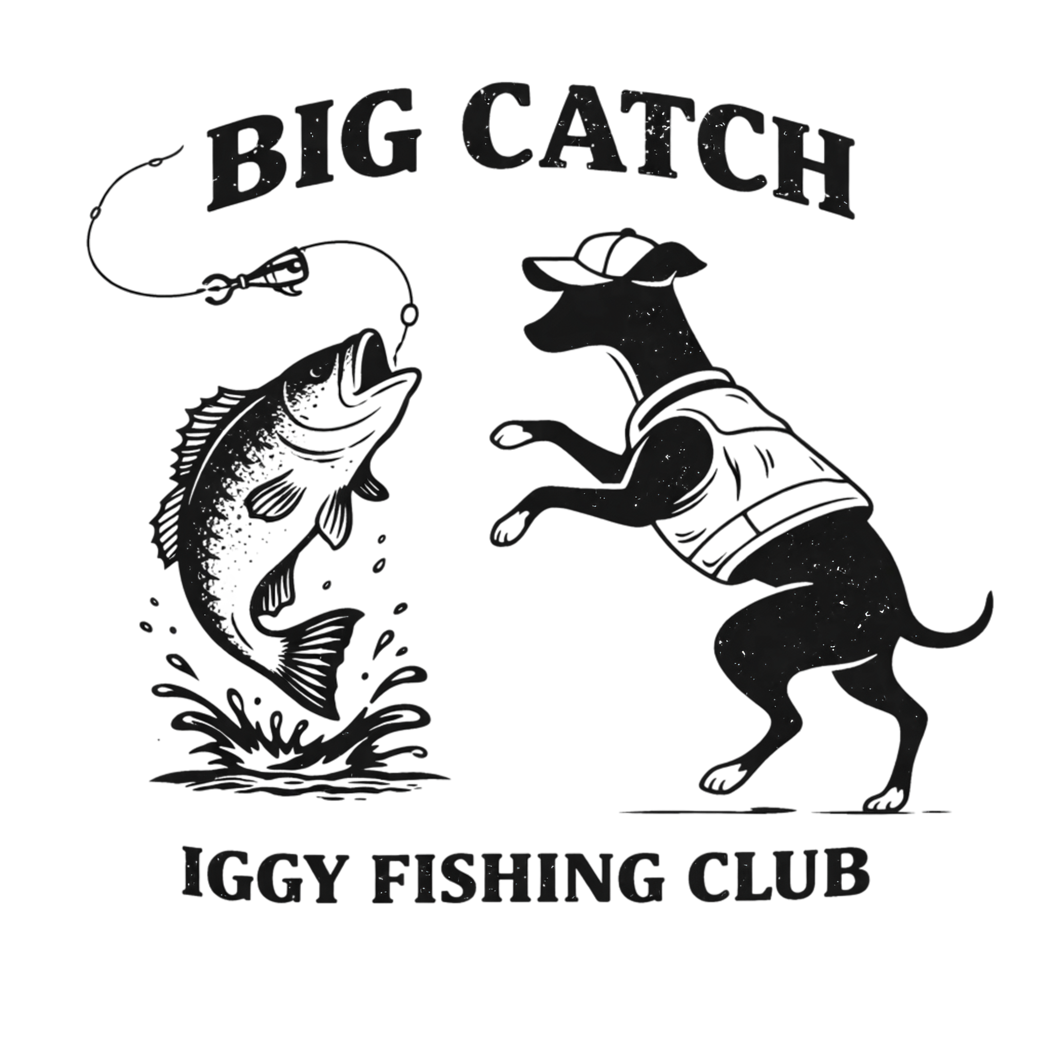 いまにも魚にとびかかりそうな、興味津々なイタグレの姿をTシャツにしました。