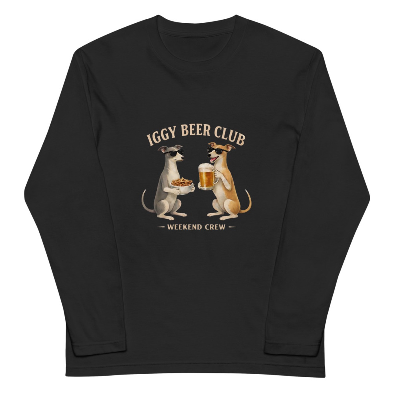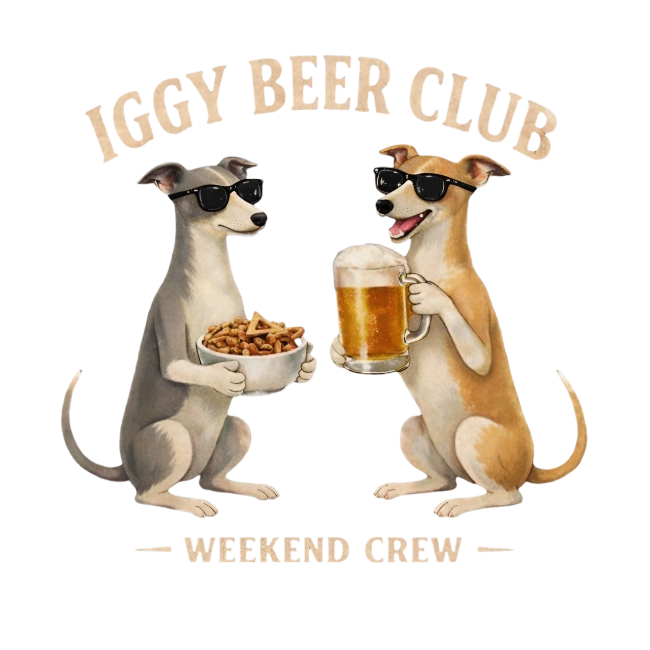 キンキンの一杯を持つイタグレと、