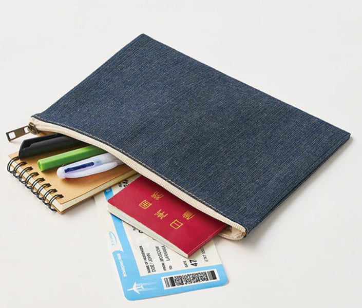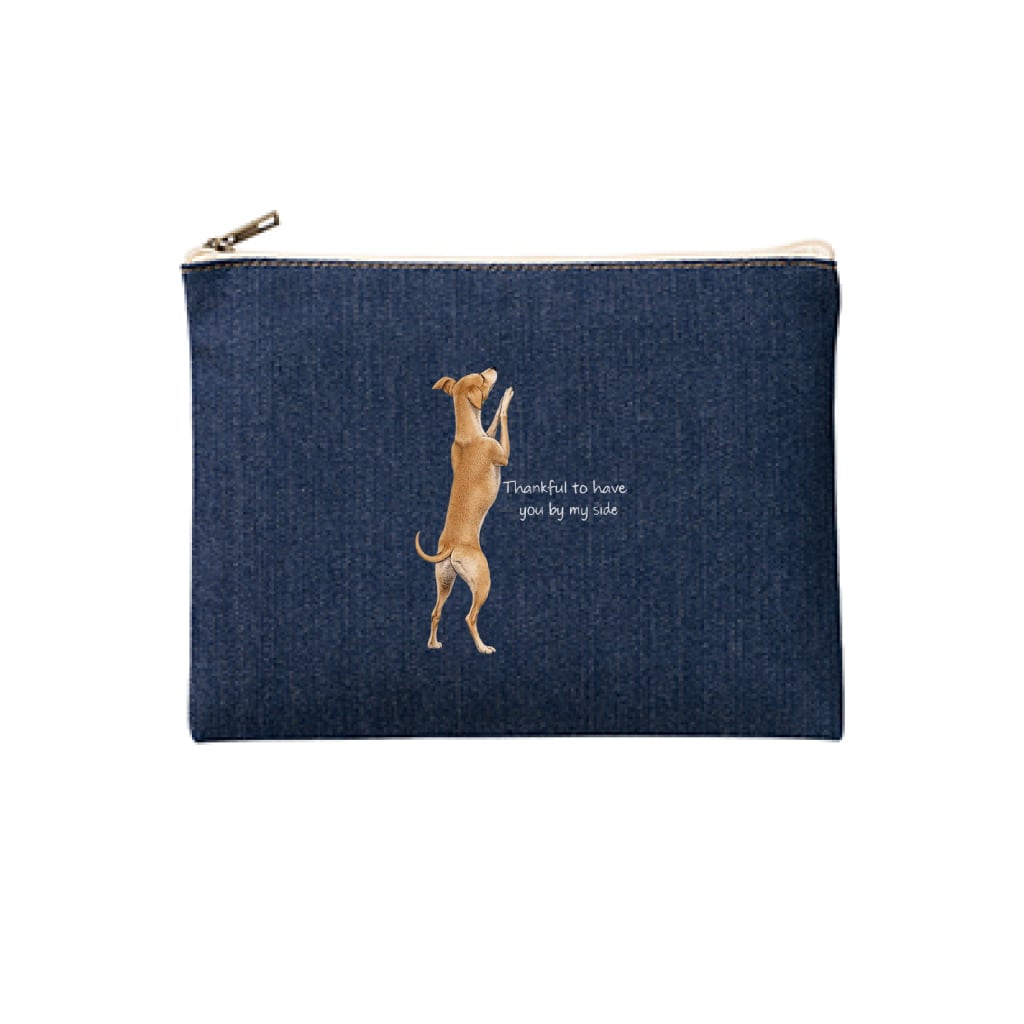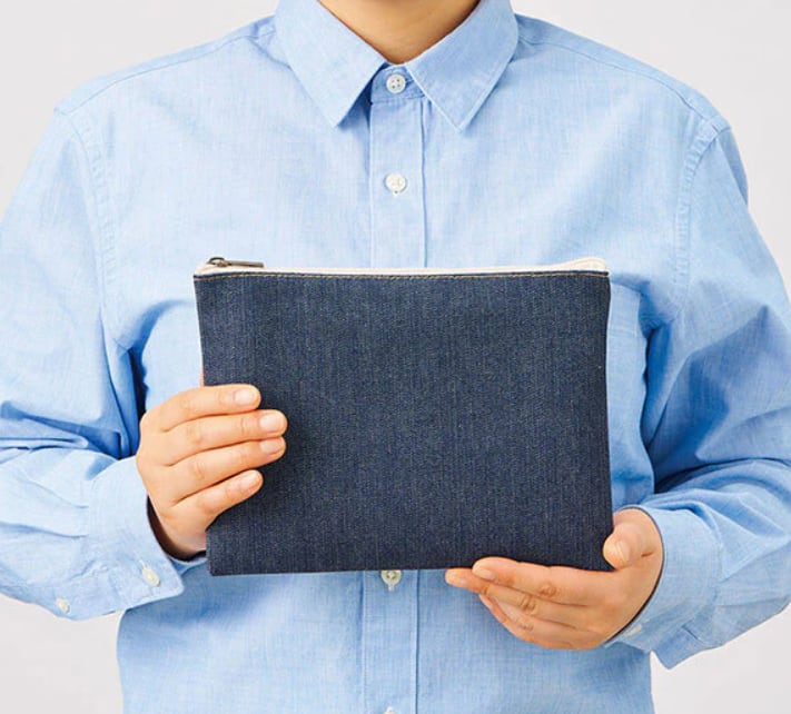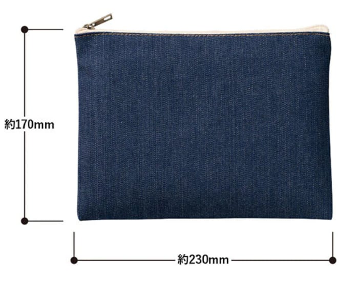 綿100%・インディゴ染めのデニム生地を使用したフラットポーチです。
