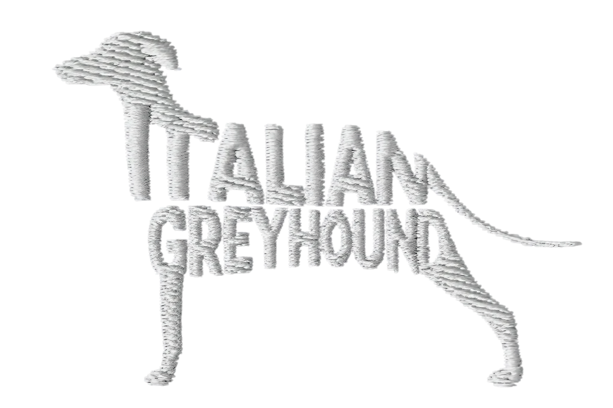 愛らしいボディラインに「ITALIAN GREYHOUND」の文字を重ねた刺繍風プリントが、シンプルなアイテムに上品なアクセントを加えます。
