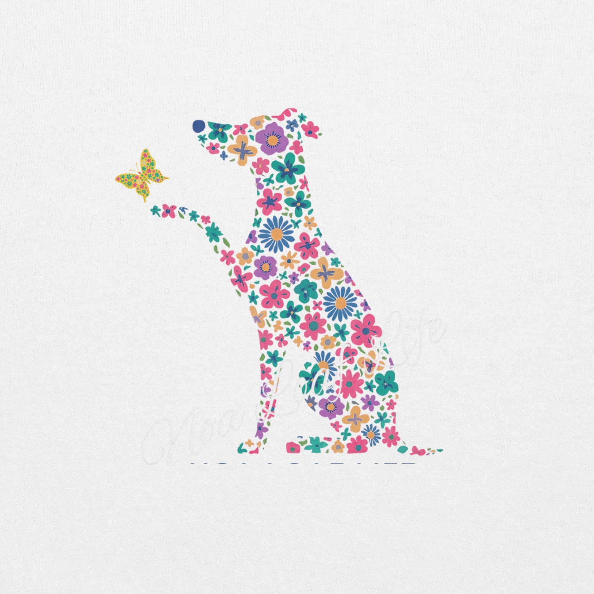 見るだけでパッと心も明るくなる、カラフルな花々で描かれたイタグレのシルエット。