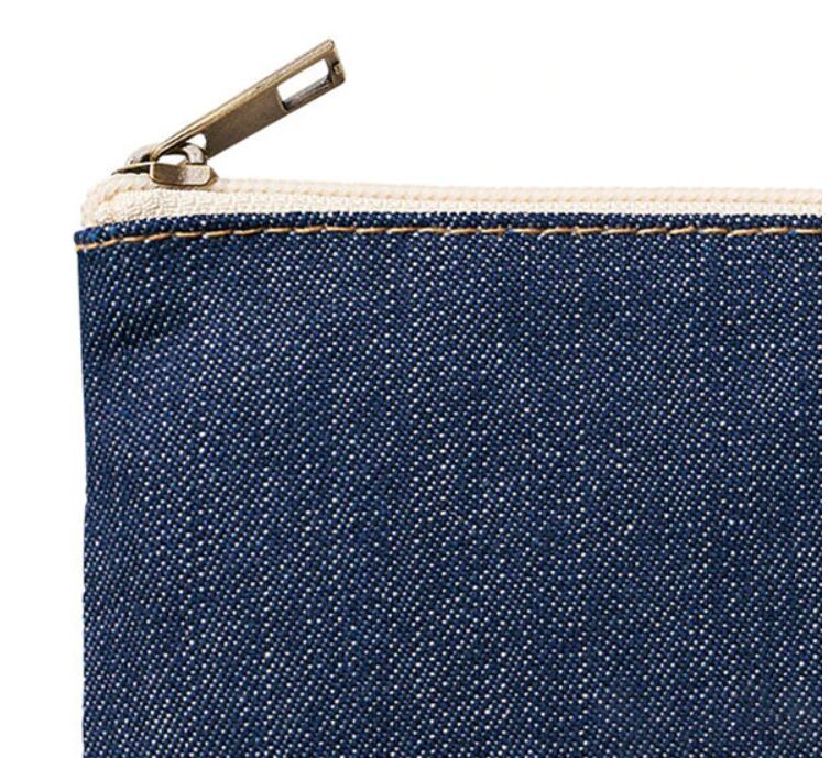 綿100%・インディゴ染めのデニム生地を使用したフラットポーチです。